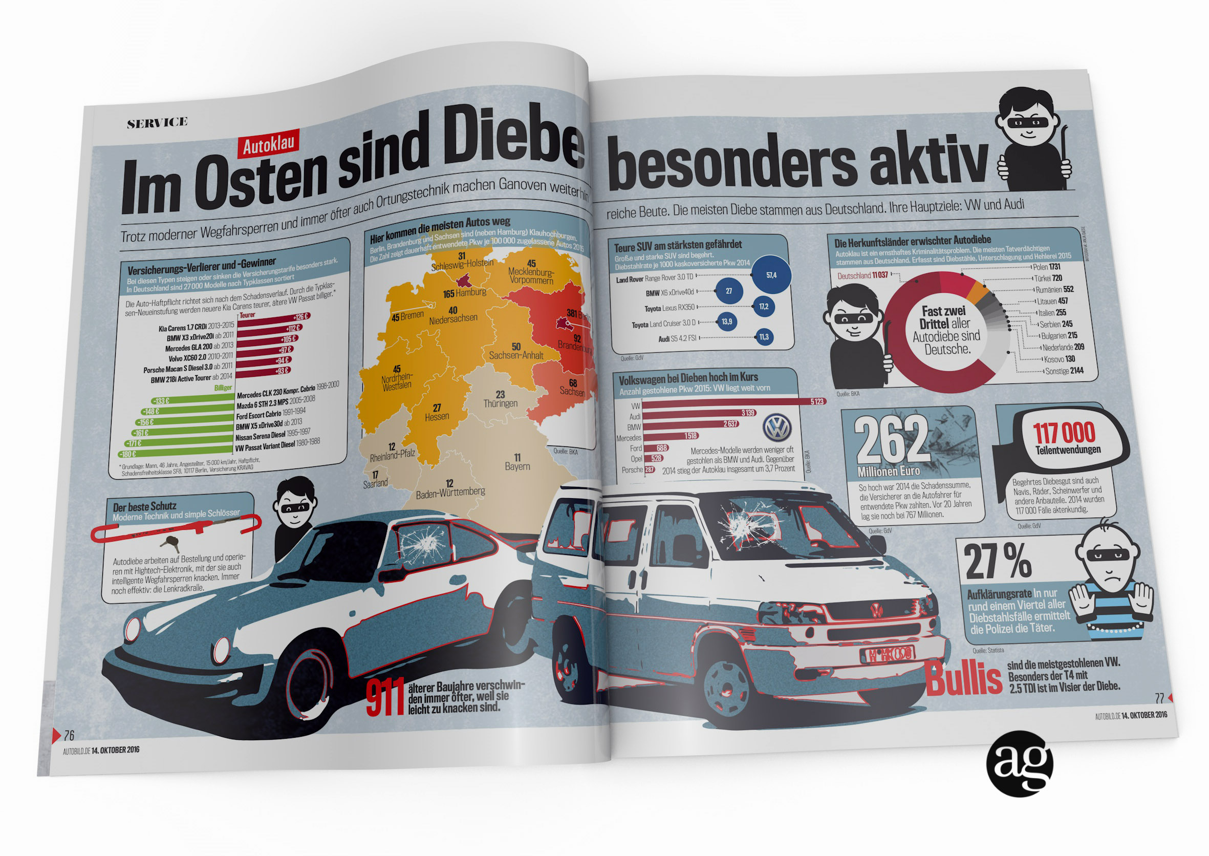 Alle Illustrationen, Icons und Infografiken durfte ich für diese Gangsterseite der AutoBild machen.